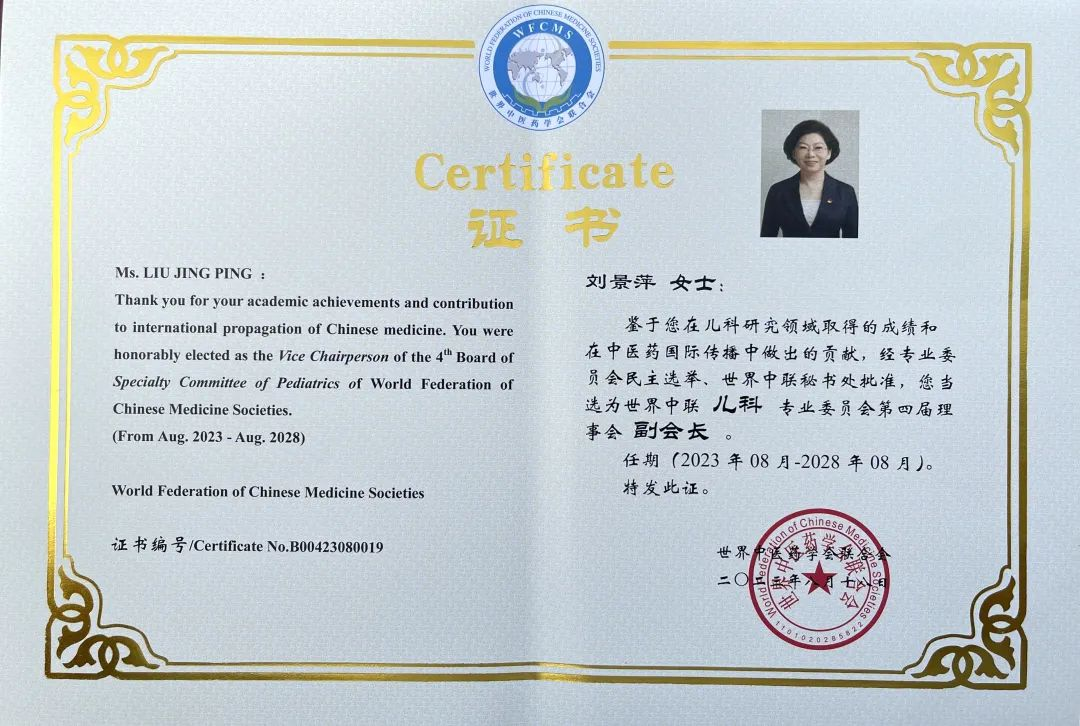 PA尊龙时凯药业集团党委书记、董事长刘景萍当选世界中医药学会联合会儿科专业委员会第四届理事会副会长